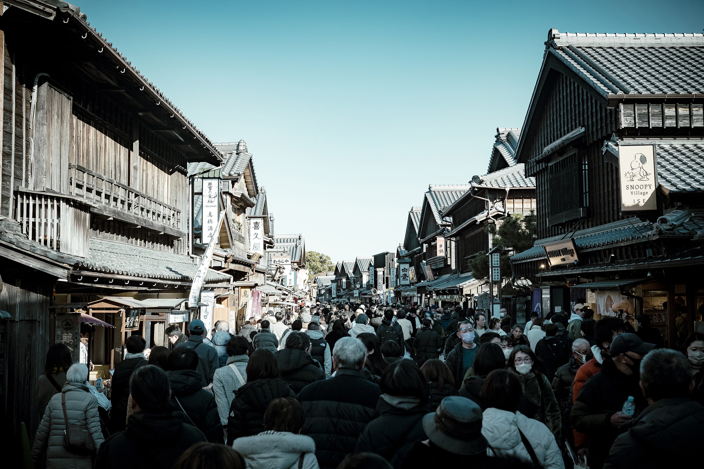 We got off the train at "Iseshi" station and stayed at a hotel for one night to visit the "Ise Jingu", which is the most famous and popular shrine to visit in Japan. We woke up at about 6 o’clock, partook of the complimentary breakfast, and left the hotel. After visiting “Geku”, we caught the bus and went to “Naiku.” There were so many people there but we didn’t wait to pray, and I was so glad to visit the “Ise Jingu” with my husband. We enjoyed taking photos at “Okage Yokocho” after exploring “Naiku.”